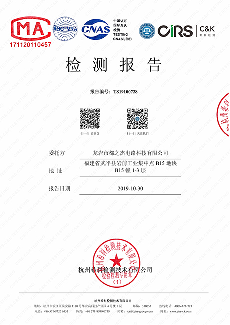工廠搭建了ISO-9001、T/S16949、ISO14001的管理體系并通過認證,產品符合CQC、UL、IPC、RoHS等